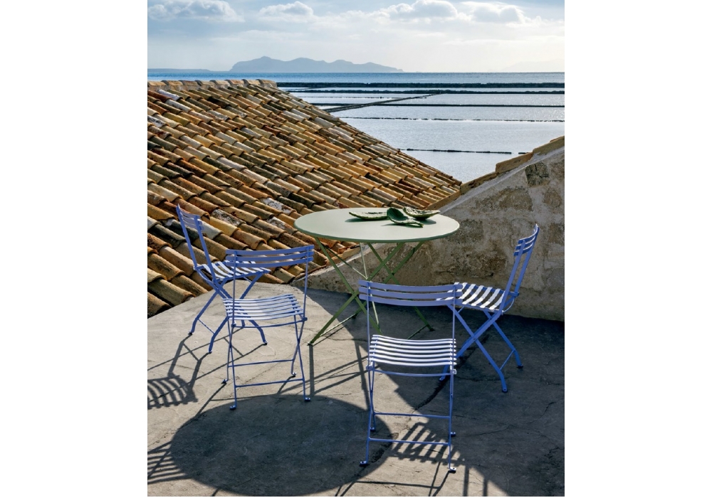 Flower diseñada por Ethimo es una mesa plegable de exterior con estructura y tapa de metal disponible en diferentes acabados y medidas.