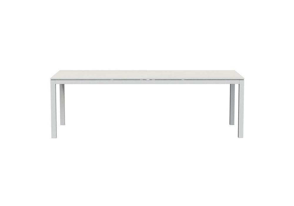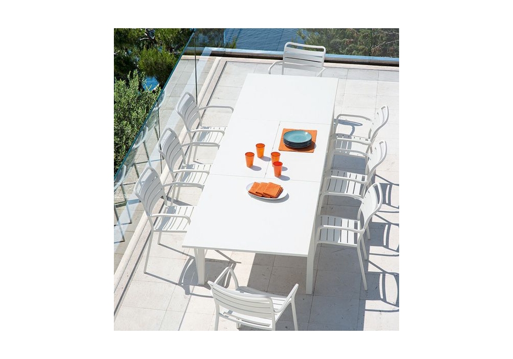 Flat producida y diseñada por Ethimo es una mesa de exterior rectangular con estructura de metal pintado y tapa extensible. Disponible en diferentes acabados y medidas.