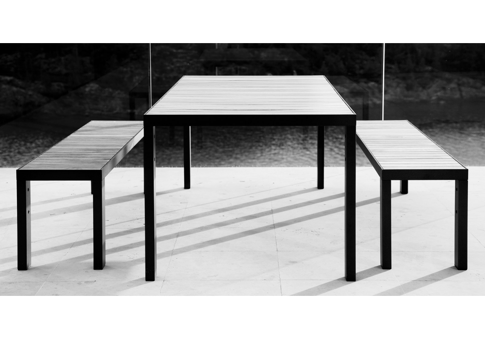 Garden Dinner diseñada por Broberg & Ridderstråle para Röshults es una mesa con estructura en acero inoxidable antracita y tapa en teca. Disponible en dos dimensiones.