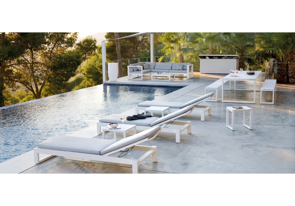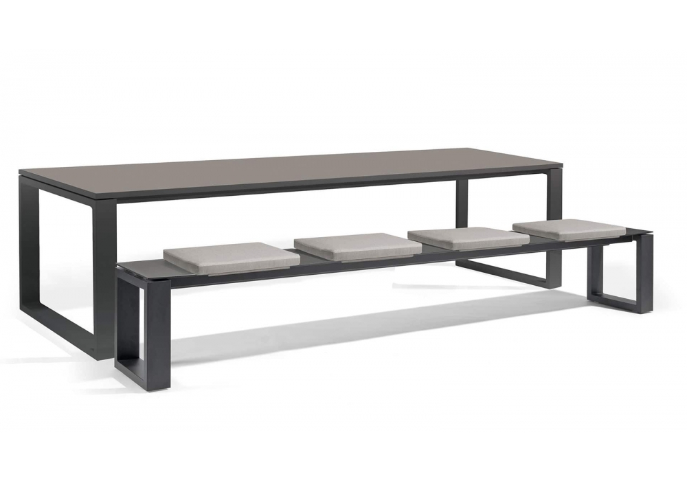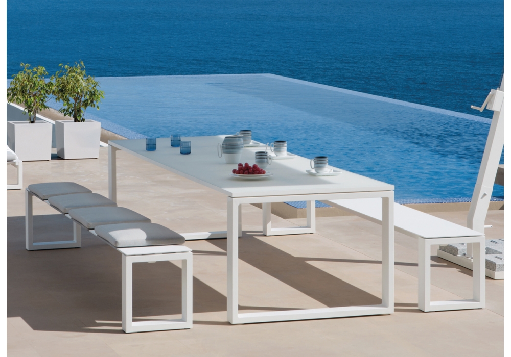 Fuse por Manutti es una mesa con estructura de aluminio barnizado en polvo y superficia disponible en diferentes acabados. Una arquitectura lounge de clase refinada y joven elegancia ambiciosa.