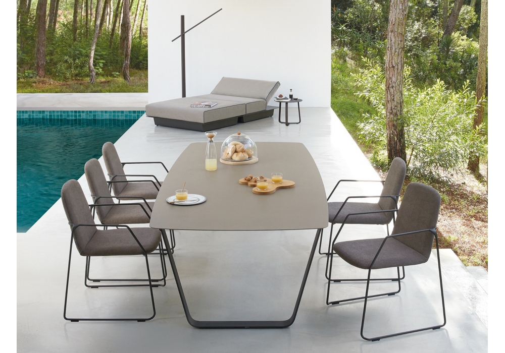 Air diseñada por Koen Van Extergem para Manutti es una mesa con estructura de hierro forjado y tablero en cerámica. La mesa Air de Manutti tiene un diseño de líneas limpias y elegantes, lleno de carácter. Disponible en diferentes acabados y dos dimensiones.
