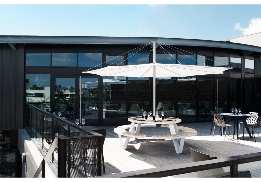 Pantagruel Picnic diseñada por Dirk Wynants para Extremis es una mesa de picnic realizada con acero y madera. La estructura es barnizada en polvo o galvanizada, y hay varias opciones de material para los bancos fijos y el tablero. También cuenta con una Lazy Susan para pasar fácilmente las cosas.