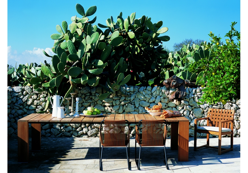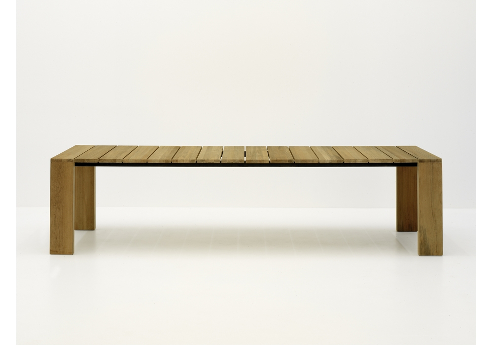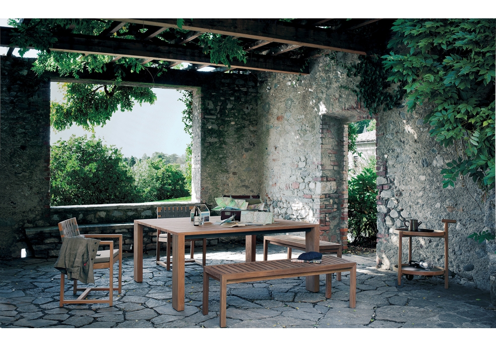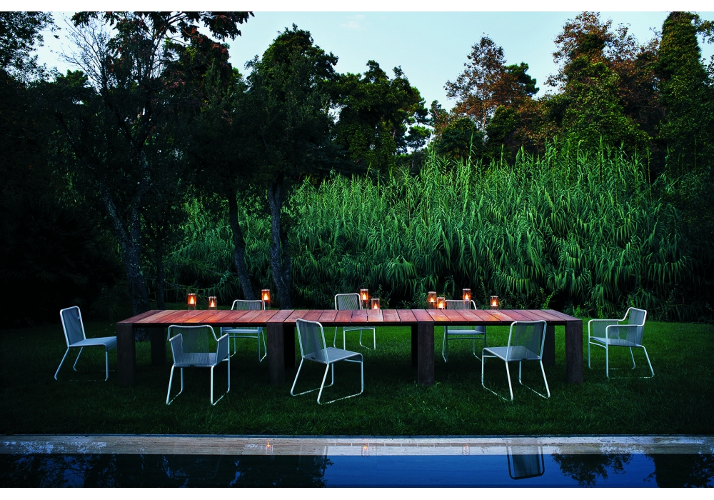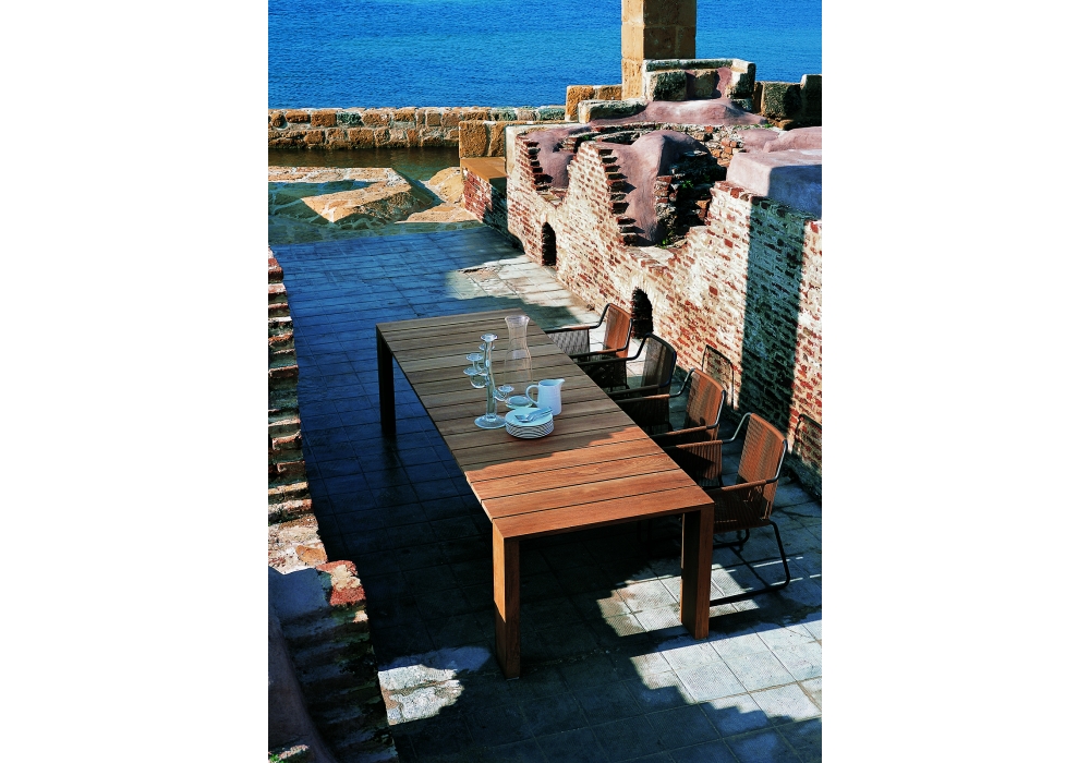 Pier diseñada por Rodolfo Dordoni para Roda es una mesa con estructura en acier barnizado en polvo y superficie y patas en madera de teca. Pier es la mesa más sin pretensiones y guapo que se podría elegir para un exterior. Las tablillas de teca, son ligeramente distanciadas como las teclas de un piano. Disponible en cuatro dimensiones.