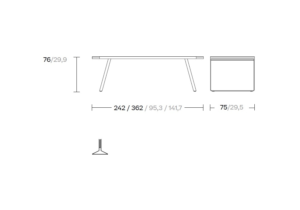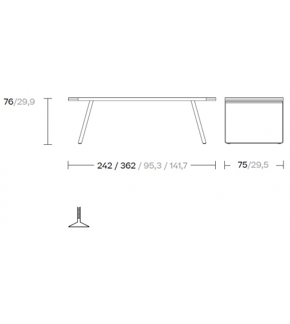 Bitta diseñada por Rodolfo Dordoni para Kettal es una mesa de comedor extensible con estructura portante de aluminio pintado y tablero cuadrangular de aluminio, madera de teca, travertino o mármol. Bitta está disponible en diferentes acabados.