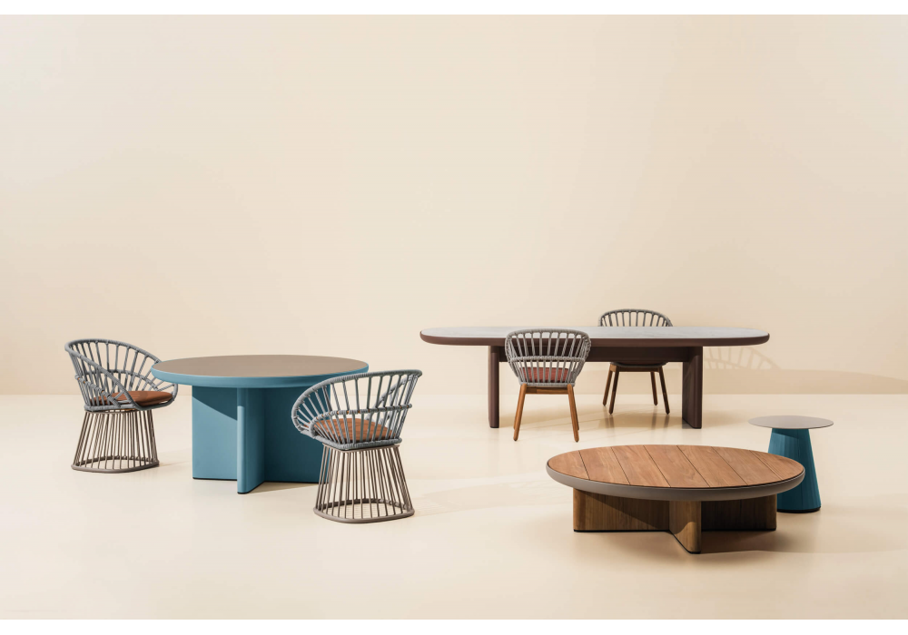 Cala diseñada por Doshi Levien para Kettal es una mesa comedor realizada con tapa de mármol blanco y patas de aluminio.