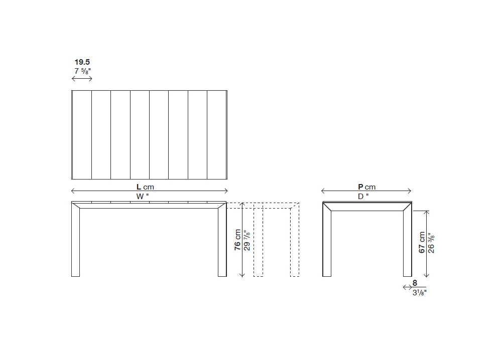Nori Slatted diseñada por Bartoli Design para Kristalia es una mesa extensible de exterior con patas de aluminio. Tapa de teca. Disponible en varias dimensiones. Extensiones de aluminio en el mismo acabado que las patas.