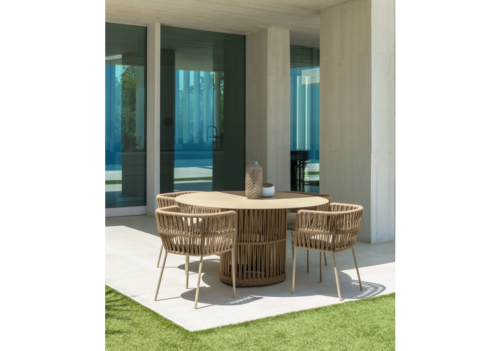 Cliff es una mesa diseñada por Ludovica y Roberto Palomba para Talenti. Top en aluminio pintado, patas en aluminio y cuerda. Disponible en diferentes medidas y acabados.