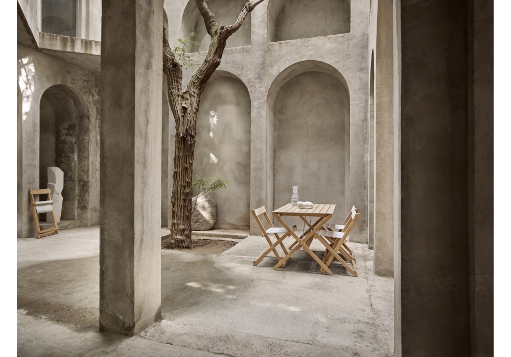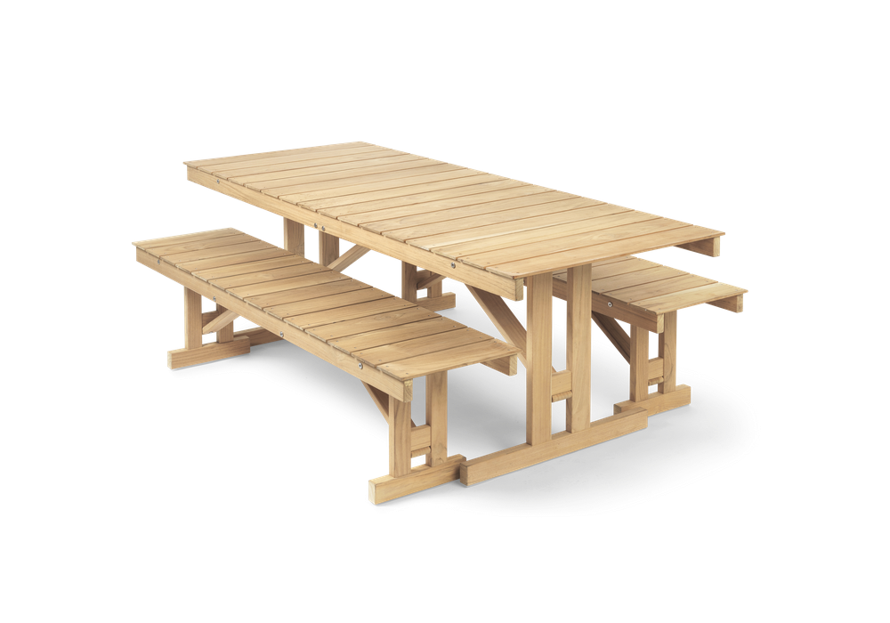 BM1771 diseñada por Børge Mogensen para Carl Hansen & Søn es una mesa para exterior con estructura y tablero de madera maciza con acabado en teca.