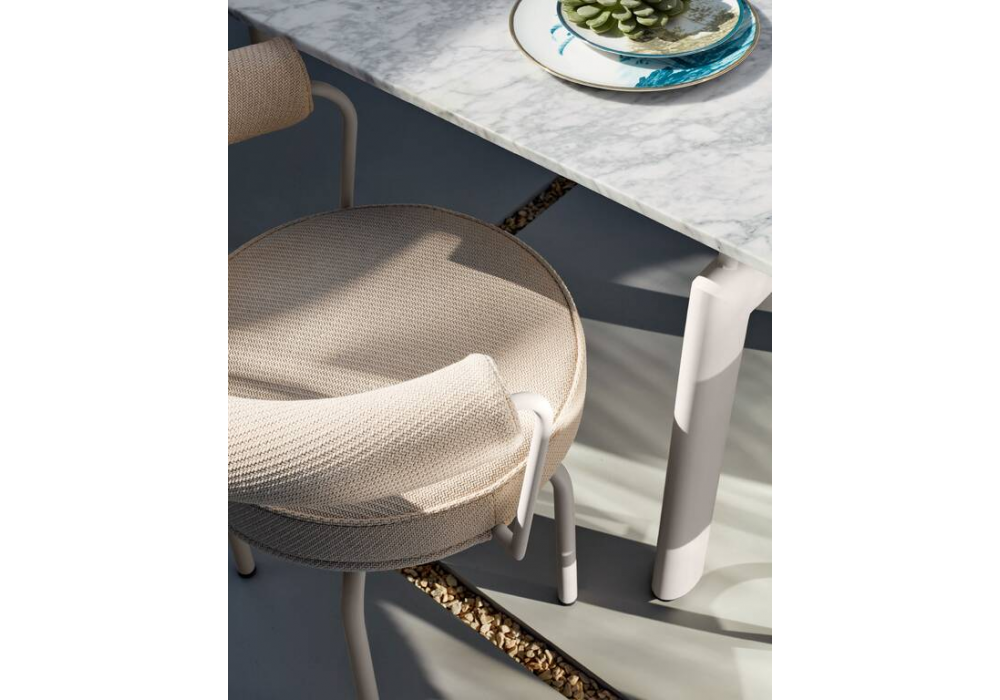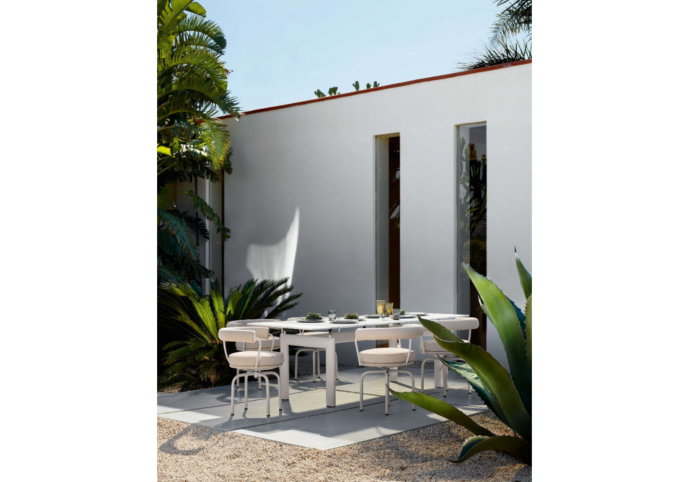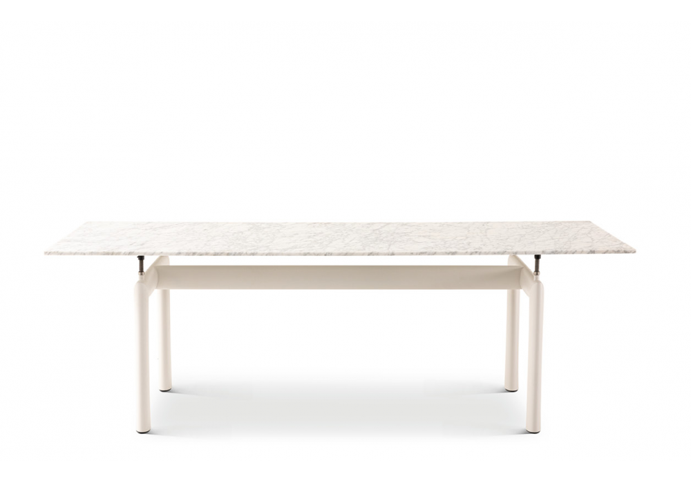 6 Table Tube D’avion, Outdoor Cassina diseñada por Le Corbusier, Pierre Jeanneret, Charlotte Perriand para Cassina es una mesa para exteriores con estructura pintada y tablero de mármol de Carrara.
