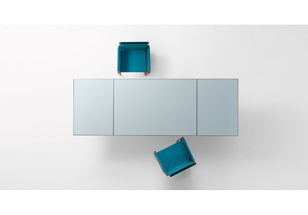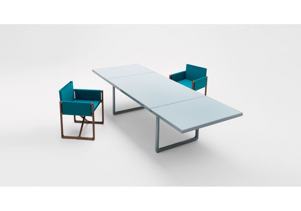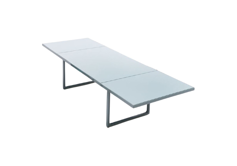 Portofino Cerámica diseñada por Vincent Van Duysen para Paola Lenti es una mesa de comedor con tapa de cerámica con acabado Glaze, compuesta por tres elementos colocados uno al lado del otro. La estructura es de aluminio pintado brillante, en diferentes colores.