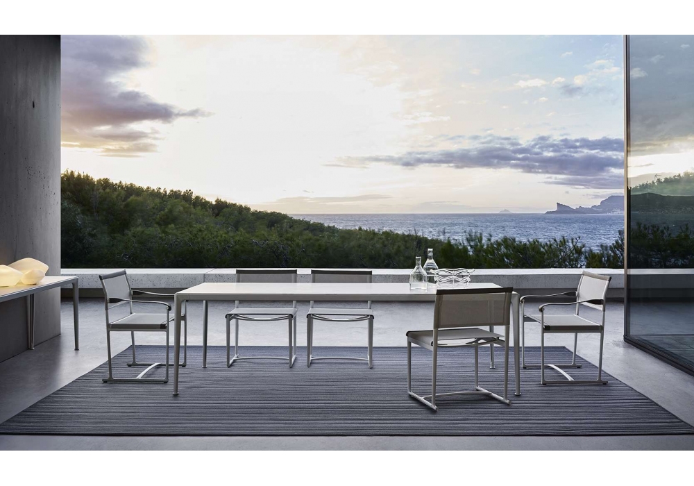 Mirto diseñada por Antonio Citterio para B&B Italia Outdoor es una mesa realizada con estructura de aluminio y tablero en gres porcelánico. Disponible en diferentes dimensiones.