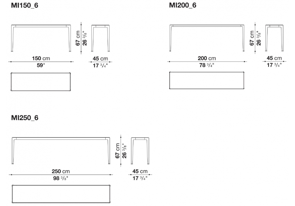 | Dimensiones | 150 x 45 x H 67 cm; 200 x 45 x H 67 cm; 250 x 45 x H 67 cm. |