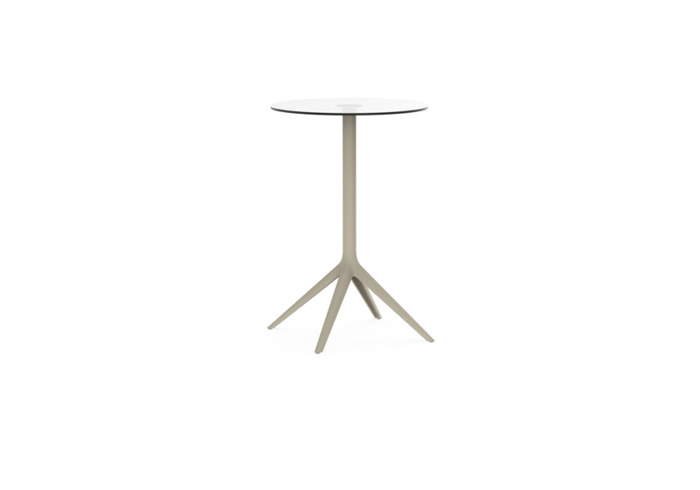 Mari-sol diseñada por Eugeni Quitllet para Vondom es una mesa alta realizada con base de aluminio y tapa en HPL, vidrio o cerámica Dekton. Disponible en diferentes acabados y dimensiones.
