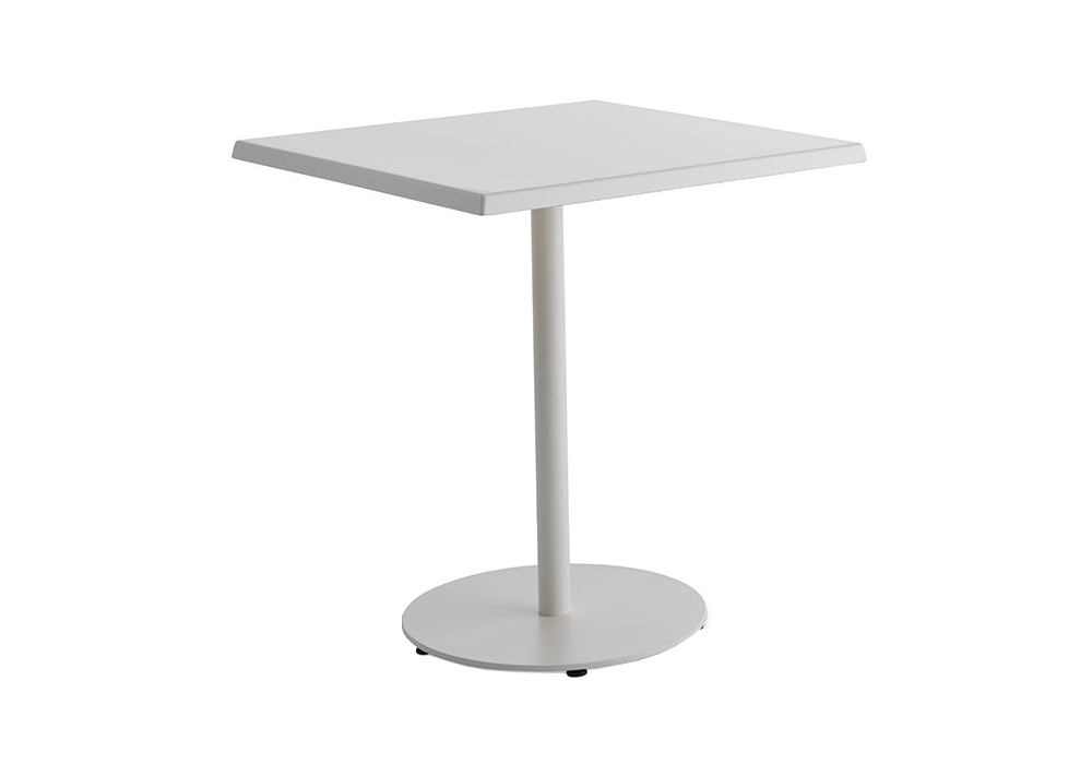 T1 Bistrot Extreme Outdoor diseñada por Casamania & Horm es una mesa realizada con una estructura de acero. Sobre en Werzalit blanco, altamente resistente al impacto, al calor, a la intemperie, a los rayos UV ya los agentes químicos.