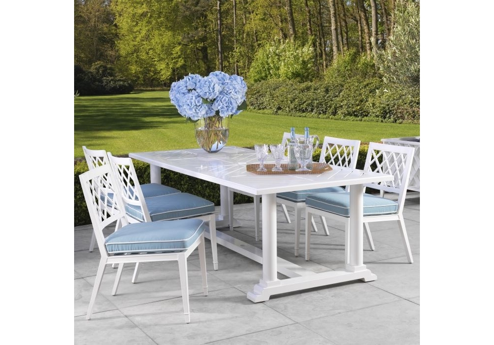 Dining Table Bell Rive diseñada por Eichholtz es una mesa hecha de materiales resistentes que es perfecta para el jardín de invierno, la terraza, el patio o el jardín.
