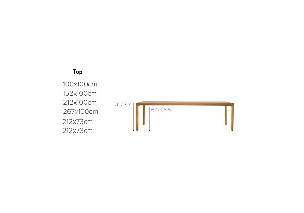 Illum Teak diseñada por Merckx & Maes para Tribù es una mesa con estructura en teak y tapa disponible en diferentes materiales y acabados. La mesa se puede hacer en varios tamaños.