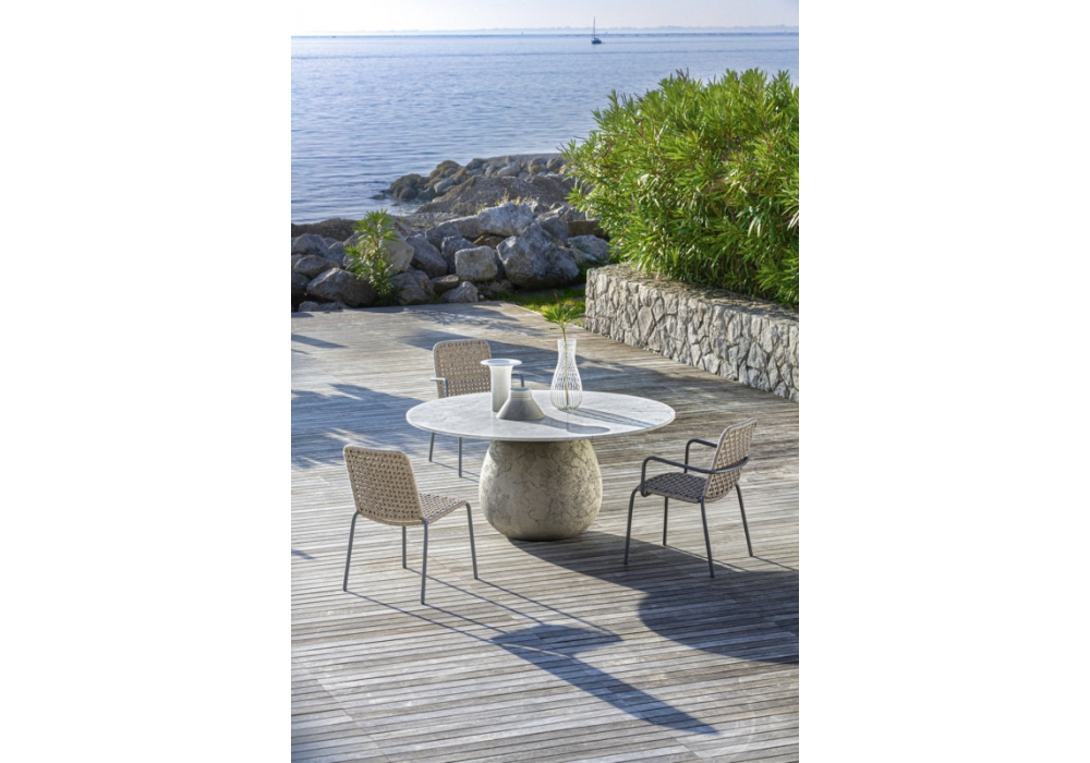 InOut diseñada por Paola Navone para Gervasoni es una mesa redonda realizada con base central en hormigón con acabado craquelado y tapa en mármol blanco de Carrara. Disponible en 2 dimensiones.