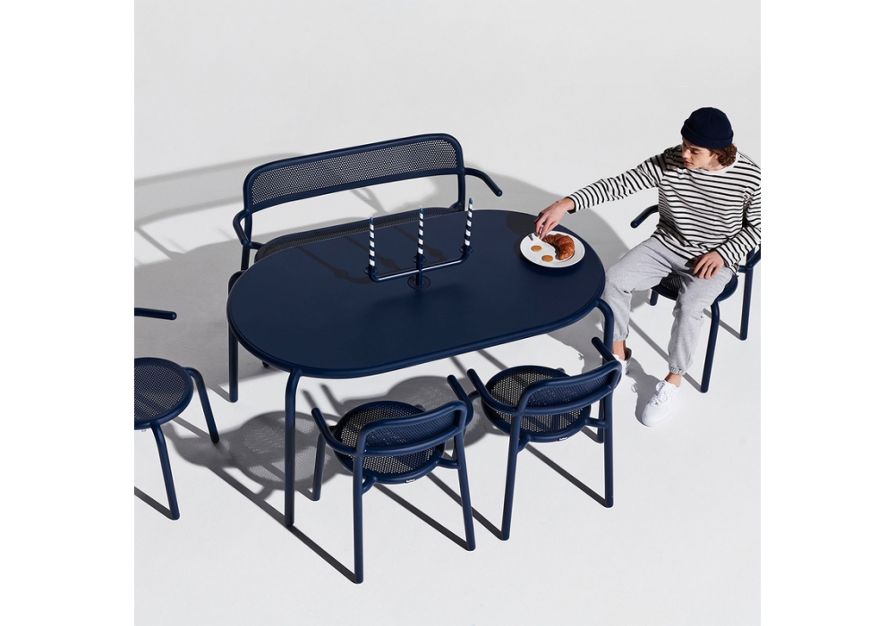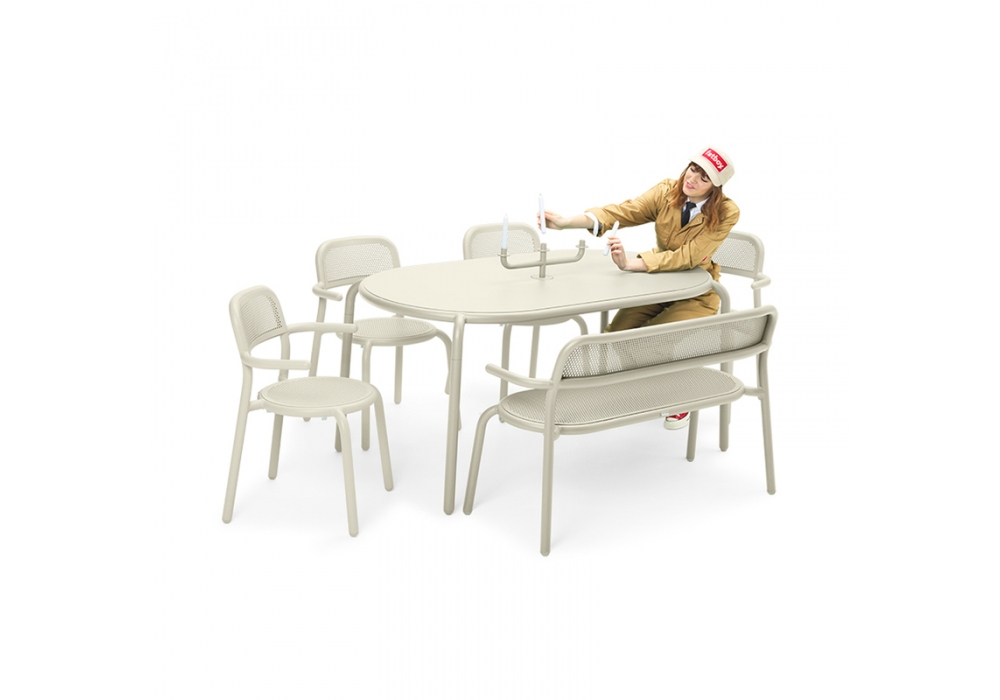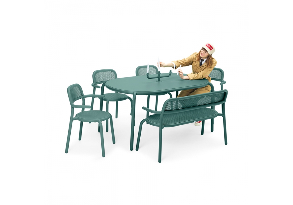 Toní Table diseñada por Erik Stehmann para Fatboy es una mesa de comedor para exteriores en aluminio ultraligero, equipada con patas ajustables y acabada con un revestimiento premium que evita la decoloración y la corrosión. Disponible en diferentes acabados.