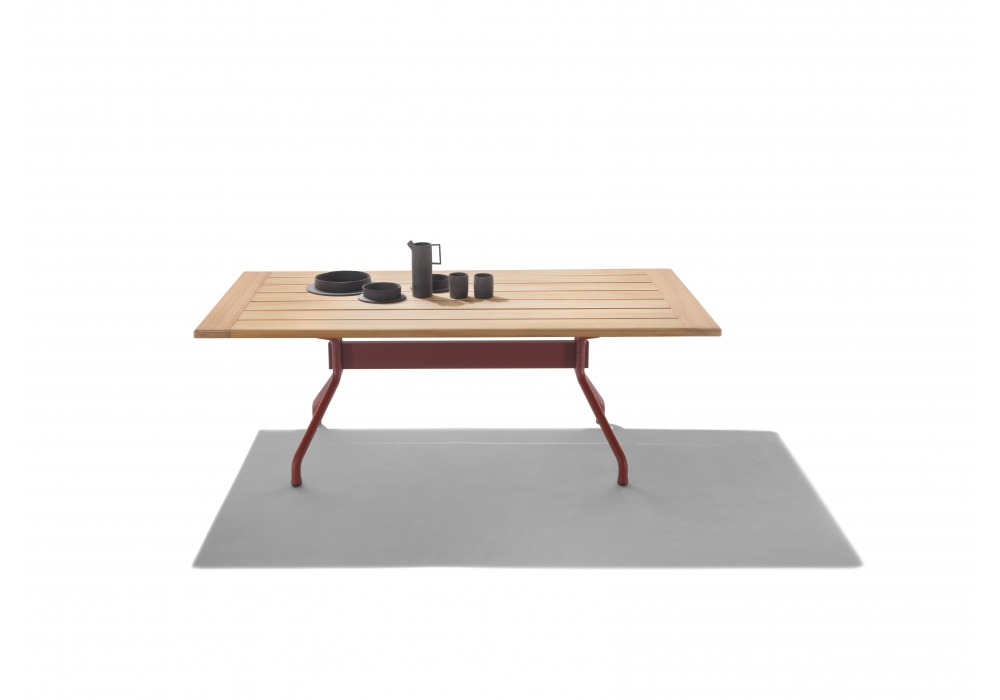 Academy Outdoor diseñada por Antonio Citterio para Flexform es una mesa de exterior con tablero de madera maciza de Iroko y estructura de acero. Está disponible en diferentes acabados y dimensiones.