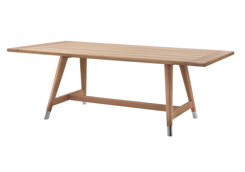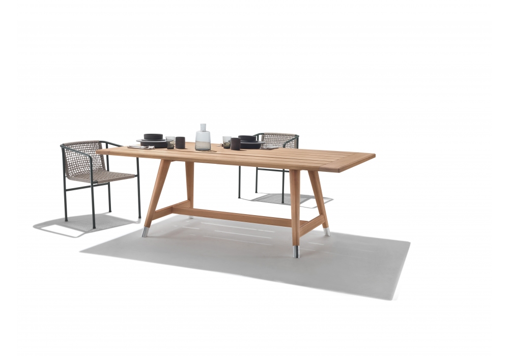 Desco Outdoor diseñada por Antonio Citterio para Flexform es una mesa de exterior realizada en madera maciza de Iroko. Está disponible en diferentes tamaños y acabados.