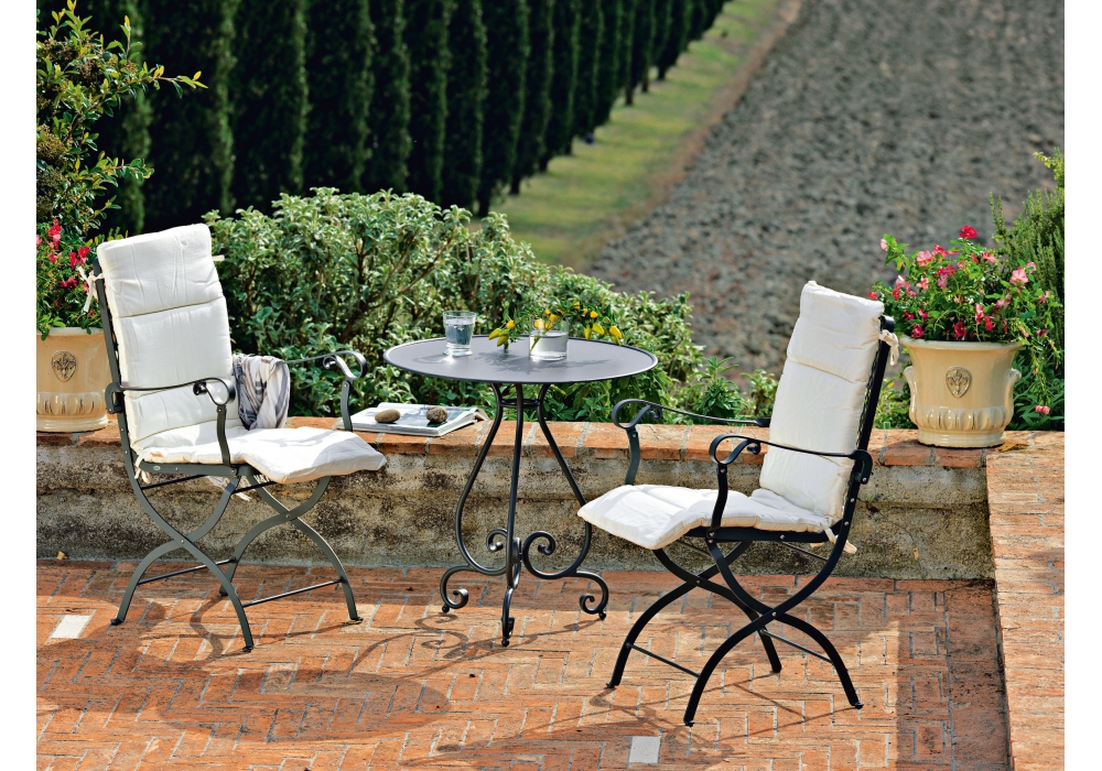 Aurora producida y firmada por Unopiù es una mesa de exterior con forma circular completamente estructurada en hierro forjado y pintada en color grafito. Aurora está disponible en diferentes tamaños.