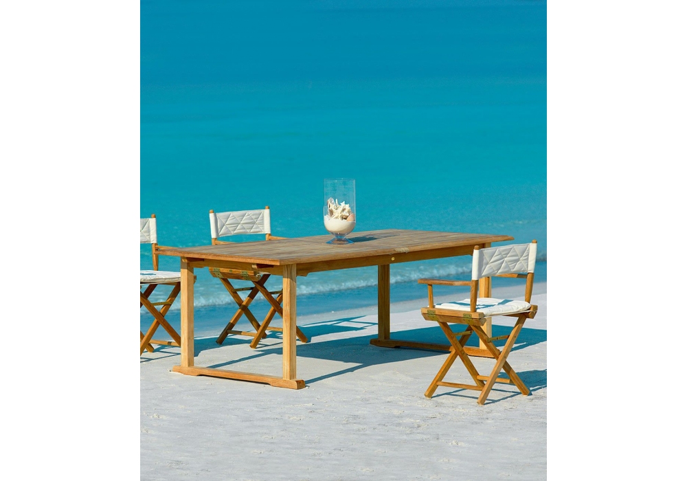 Chelsea producida y firmada por Unopiù es una mesa de exterior extensible con forma cuadrangular completamente estructurada en madera de teca natural. Chelsea está disponible en diferentes tamaños.