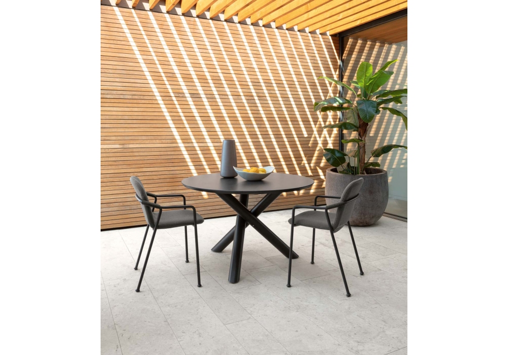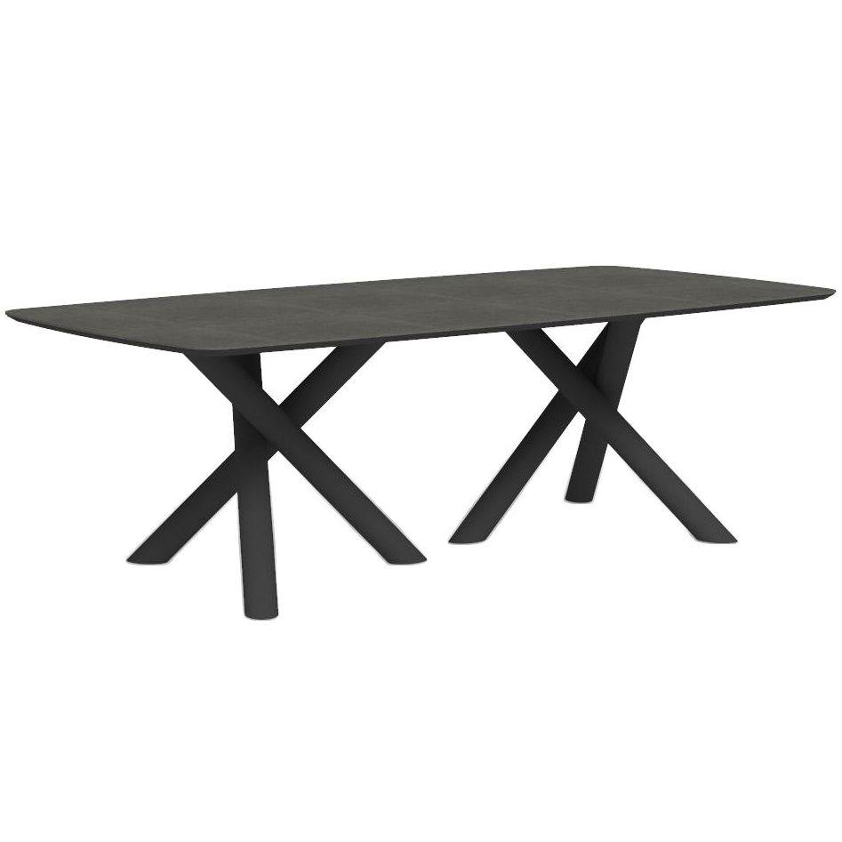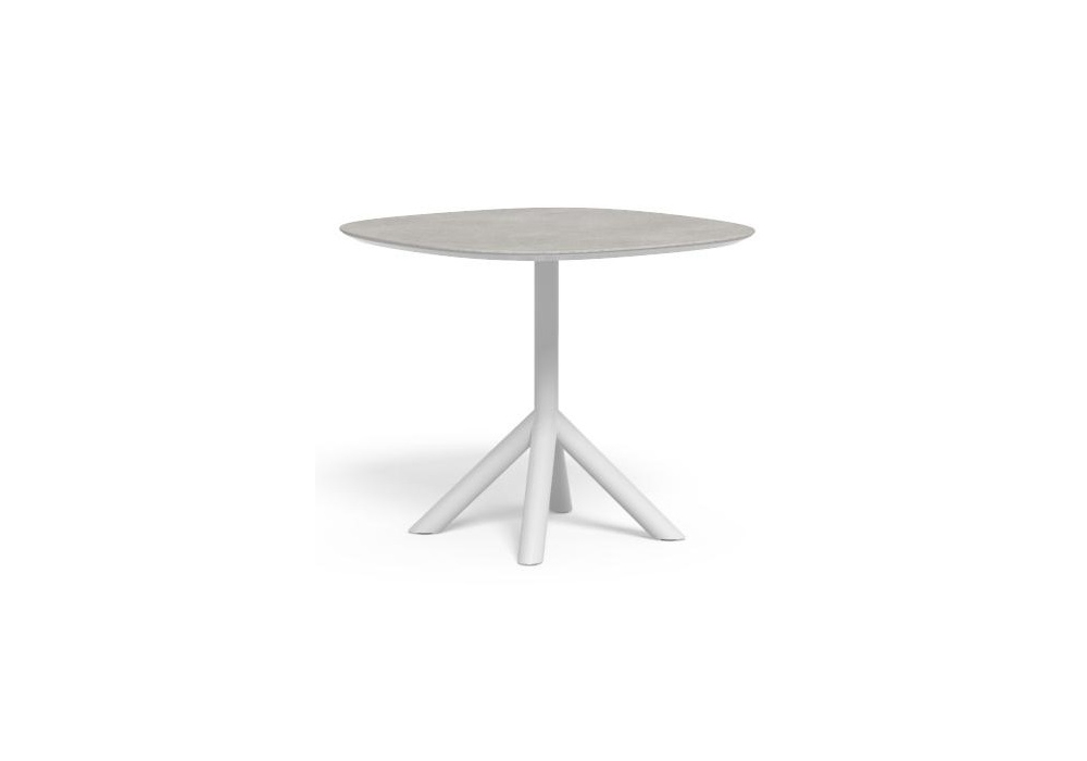 Coral diseñada por Marco Acerbis para Talenti es una colección de mesas para exterior con base de aluminio y sobre de gres.