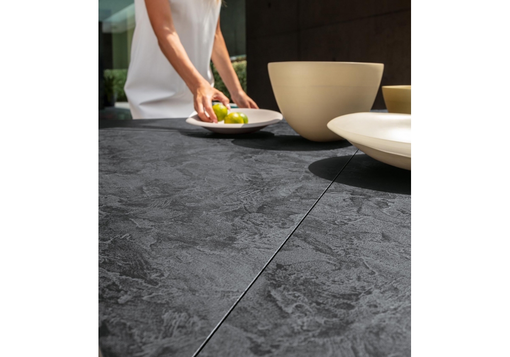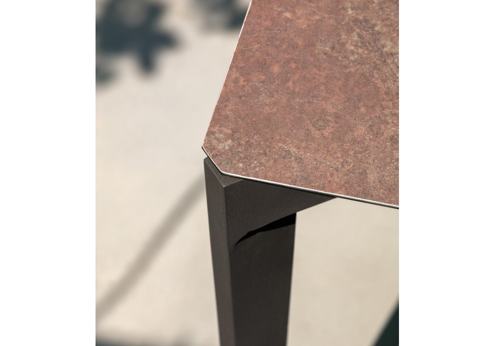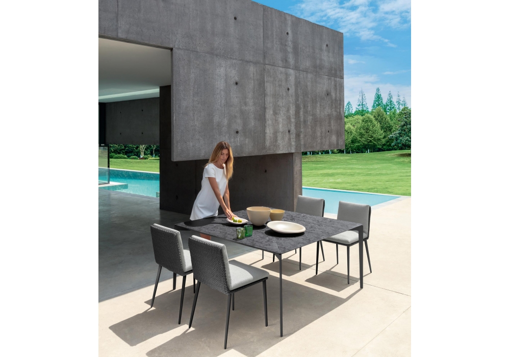 Leaf diseñada por Marco Acerbis para Talenti es una colección de mesas para exterior con base de aluminio y sobre en vitter disponible en varios colores.