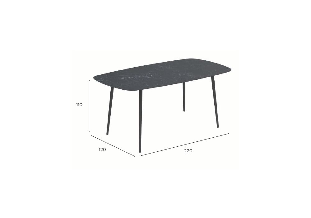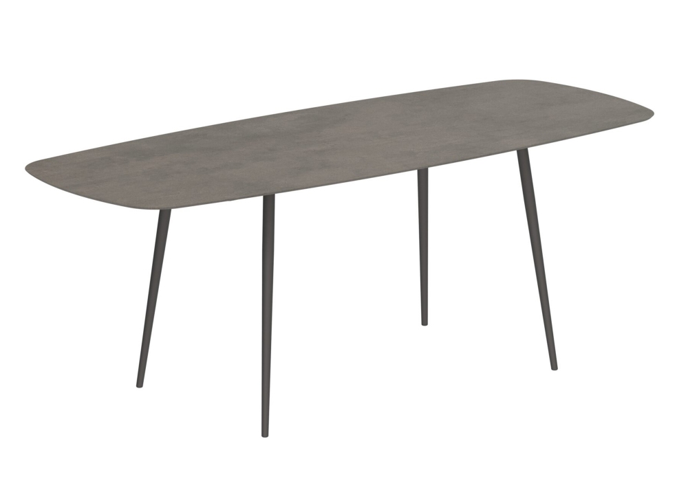 Styletto diseñada por Kris Van Puyvelde para Royal Botania es una mesa bar para exterior con estructura de aluminio y tapa en diferentes acabados y materiales.