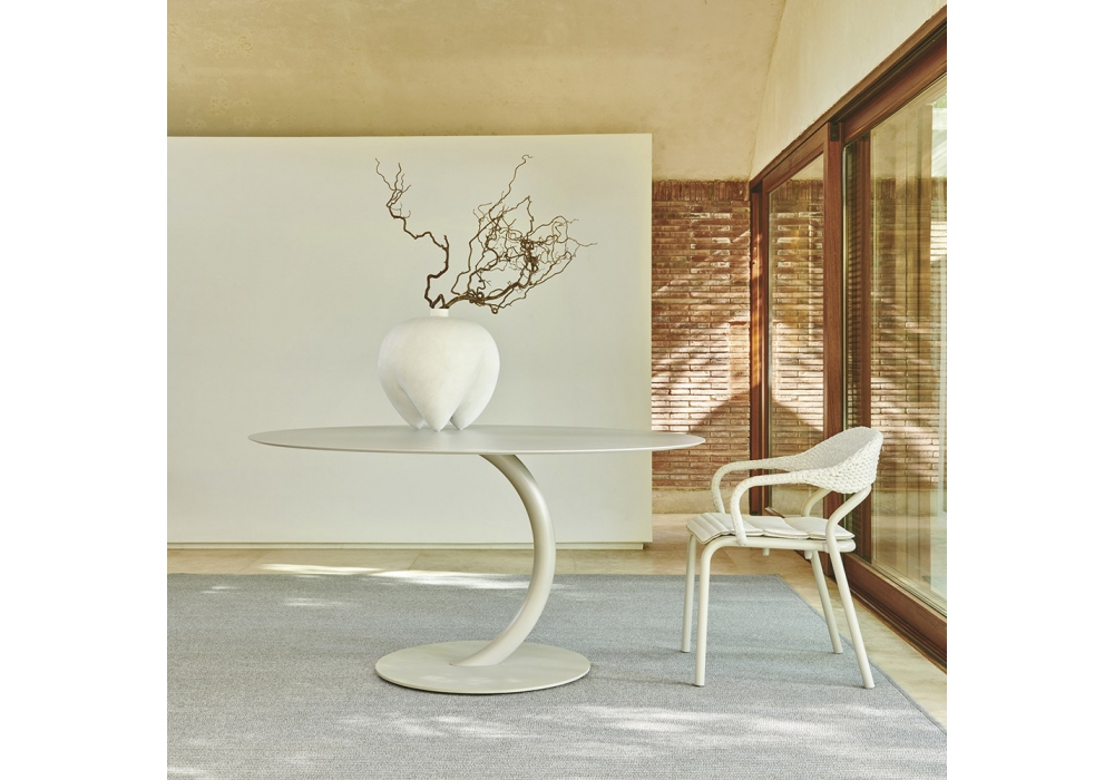 Flexion diseñada por Edoardo Gherardi para Varaschin es una mesa con columna que descansa sobre una base de acero con ciclo de protección C5M (lo que la hace apta para uso en áreas marinas). Recubrimiento en polvo. Disponible en diferentes acabados y en 4 tamaños.