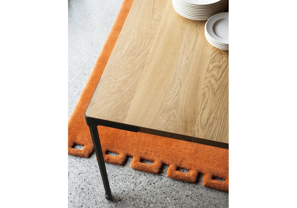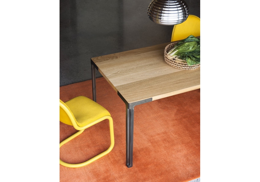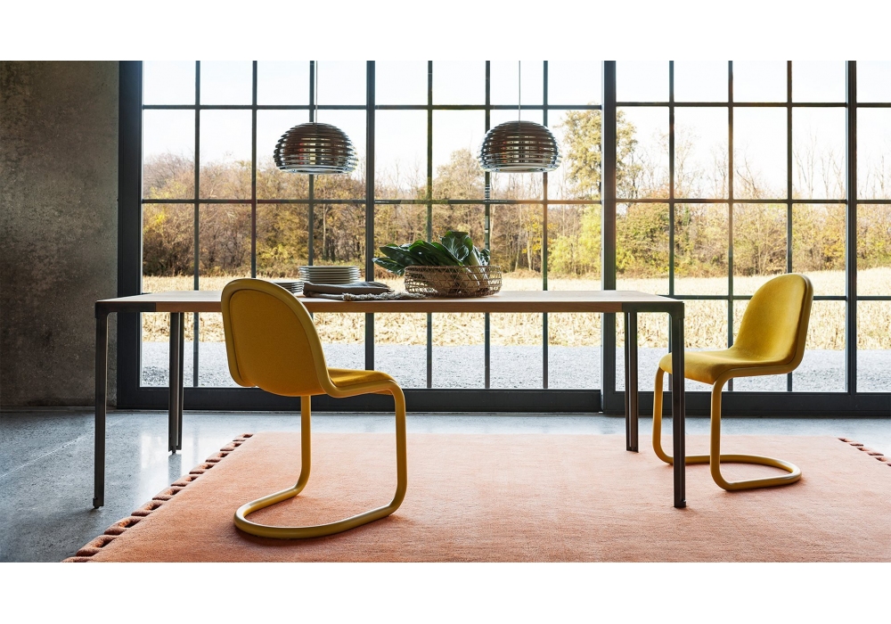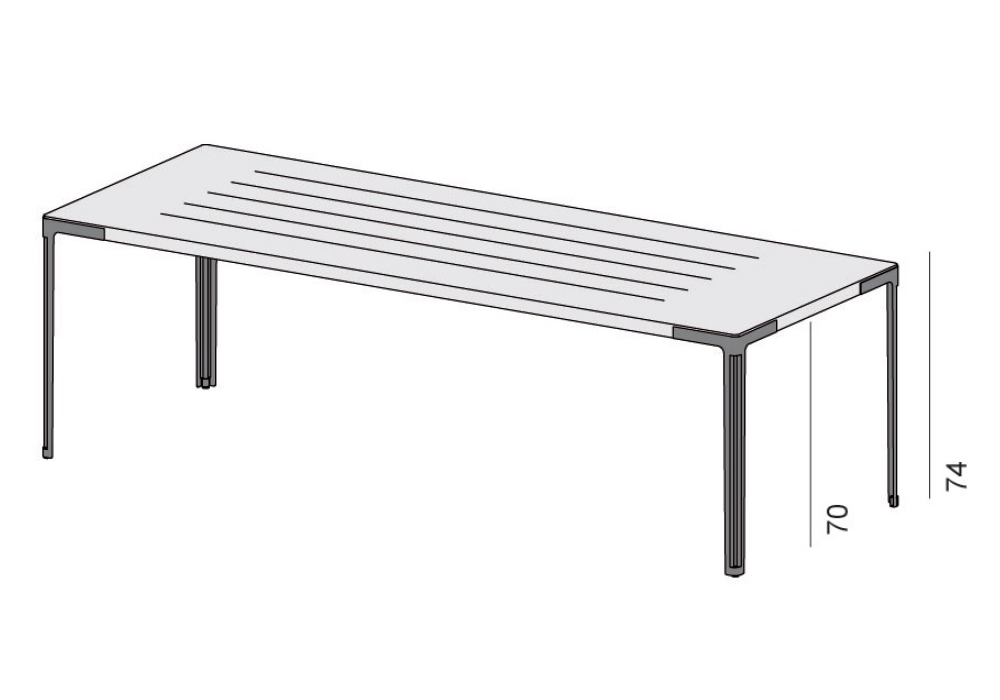 Fan diseñada por Piero Lissoni para Desalto es una mesa con patas de acero inoxidable lacado disponible en diferentes acabados, tablero realizado con listones de iroko macizo tratado con aceite específico para uso exterior. La mesa también está disponible en diferentes dimensiones.