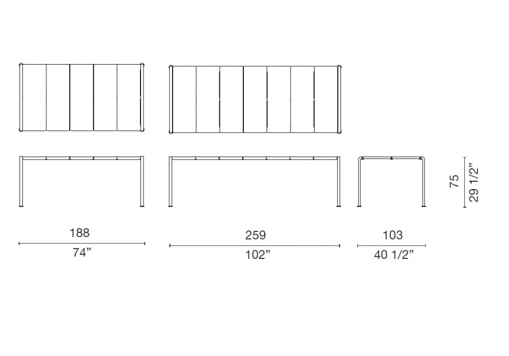 Vendicari Lido diseñada por Jangir Maddadi para Cappellini es una mesa de exterior realizada con una estructura desmontable en tubo de acero inoxidable AISI 304 y tablero en chapa de aluminio cortada con láser y doblada con pintura en polvo gofrada.