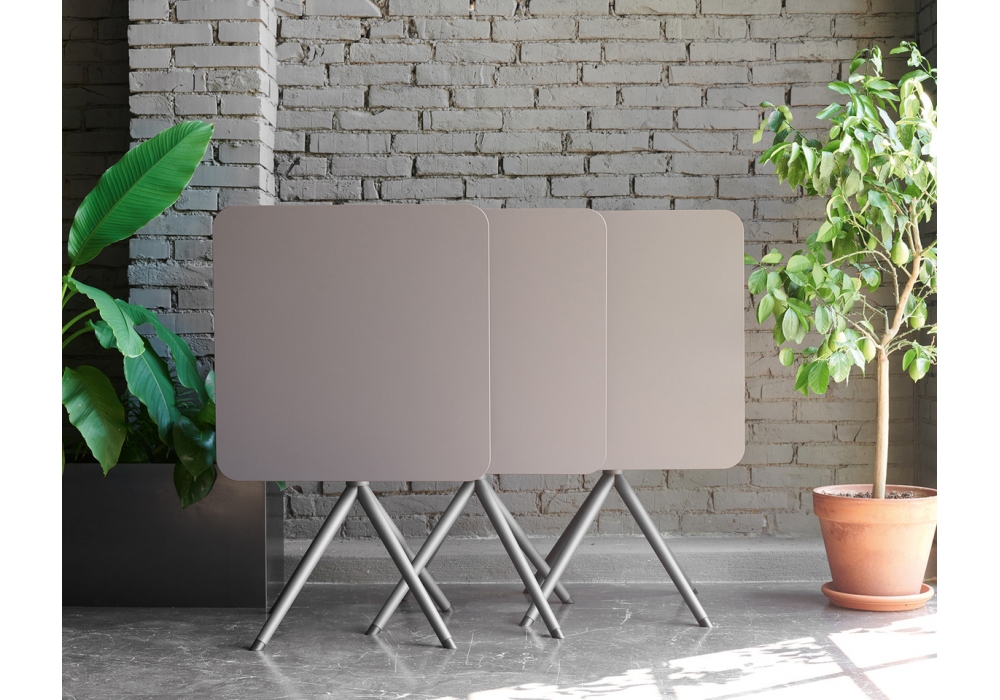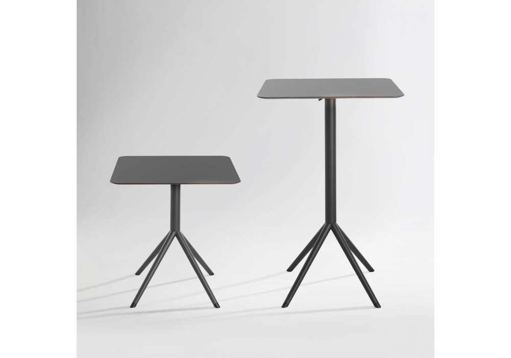 OTX diseñada por Gabriele y Oscar Buratti para Potocco es una mesa alta de exterior con forma circular o cuadrangular con base de metal pintado en diferentes acabados y tapa de HPL. Disponible en diferentes dimensiones.