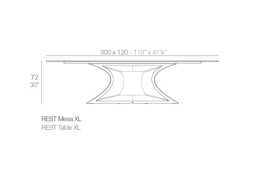 Rest diseñada por A-CERO para Vondom es una mesa fabricada en resina de polietileno mediante moldeo rotacional. 100 % reciclable. Apto para uso interior y exterior. Tablero de HPL. Disponible en diferentes acabados.
