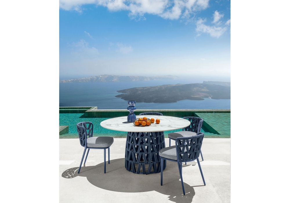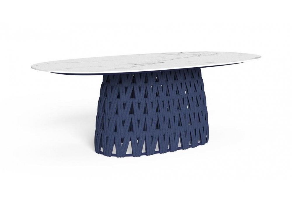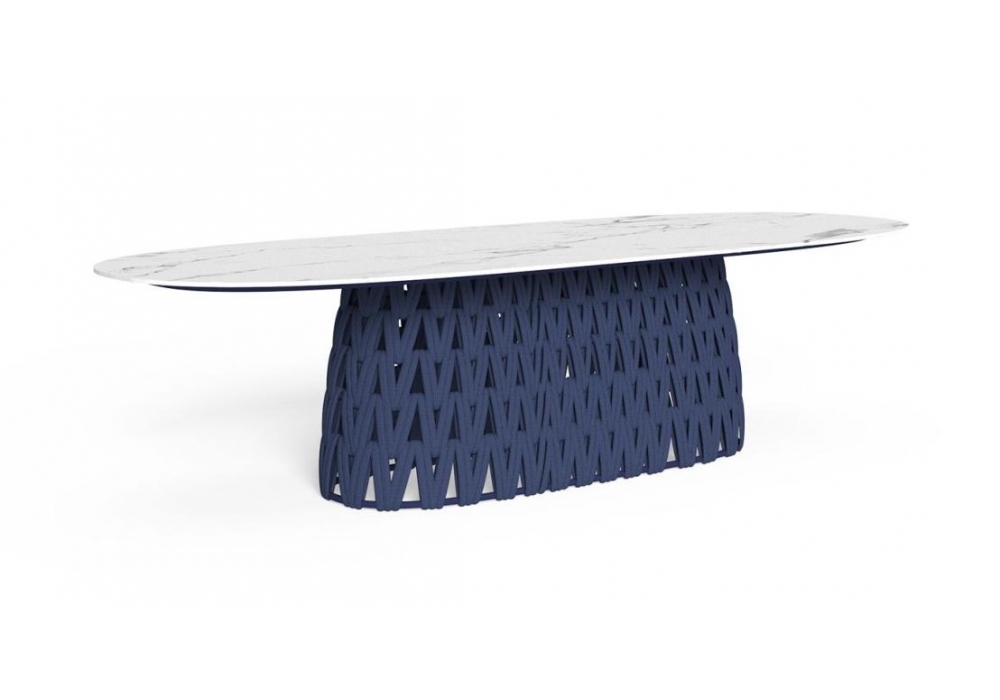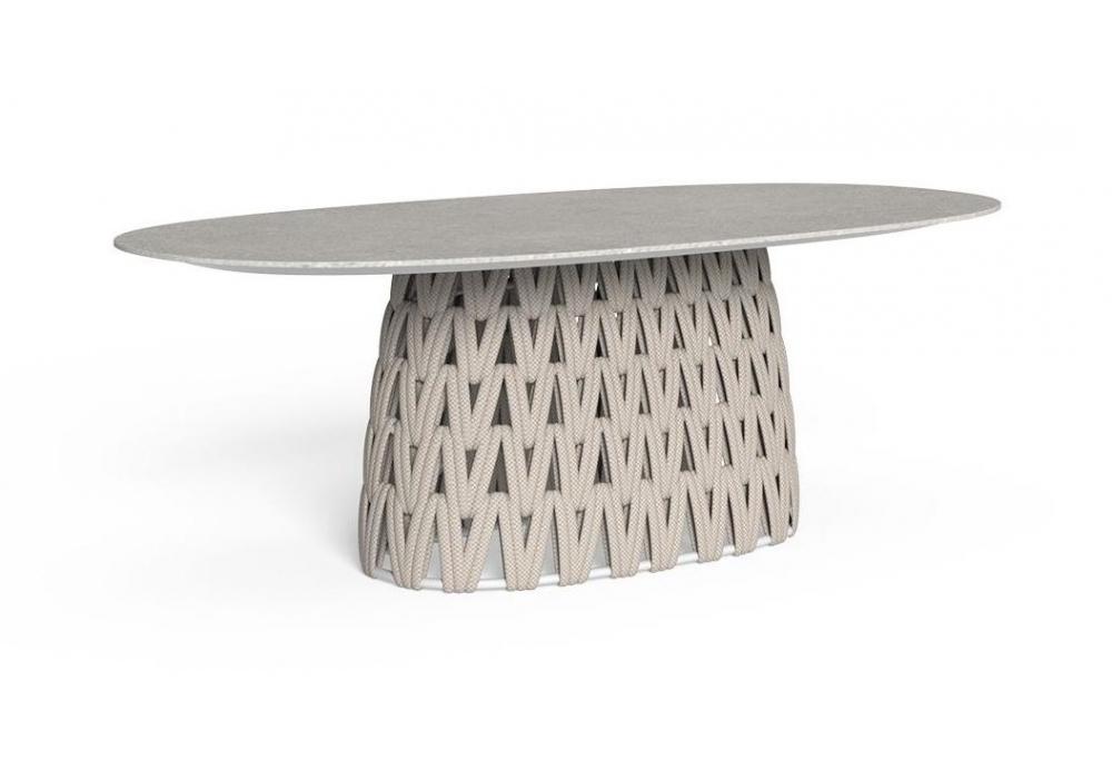 Swipe diseñada por Ludovica & Roberto Palomba para Talenti es una mesa con estructura de aluminio, base revestida con cuerdas sintéticas acolchadas, tapa de gres. Disponible en diferentes acabados y tamaños.