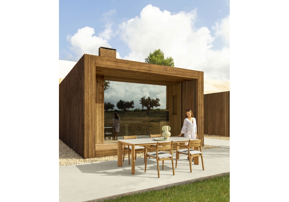 Oliver diseñada por Talenti es una mesa realizada en madera, tapa en acabado Terrazzo Beige.