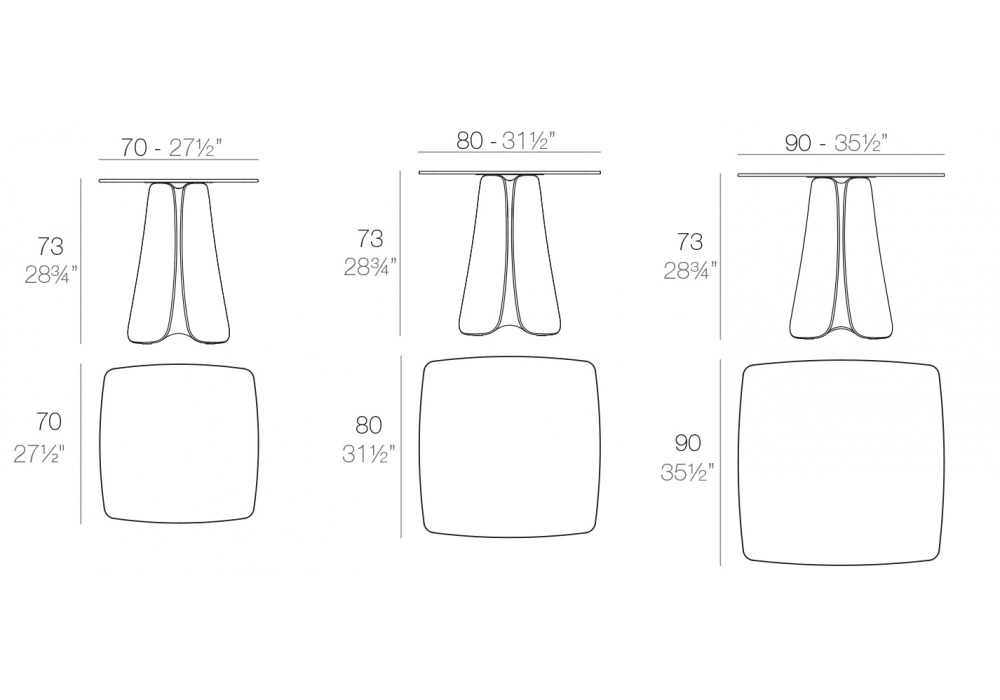 | Dimensiones | 70 x 70 x H 73 cm; 80 x 80 x H 73 cm; 90 x 90 x H 73 cm |
