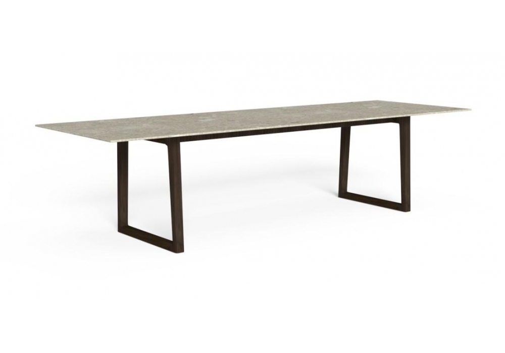 Ever diseñada por Christophe Pillet para Talenti es una mesa rectangular realizada en madera, tapa en gres o piedra de lava.