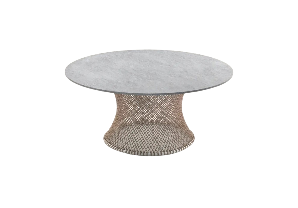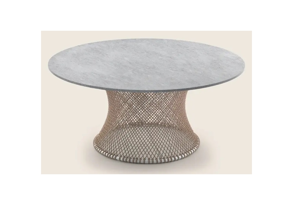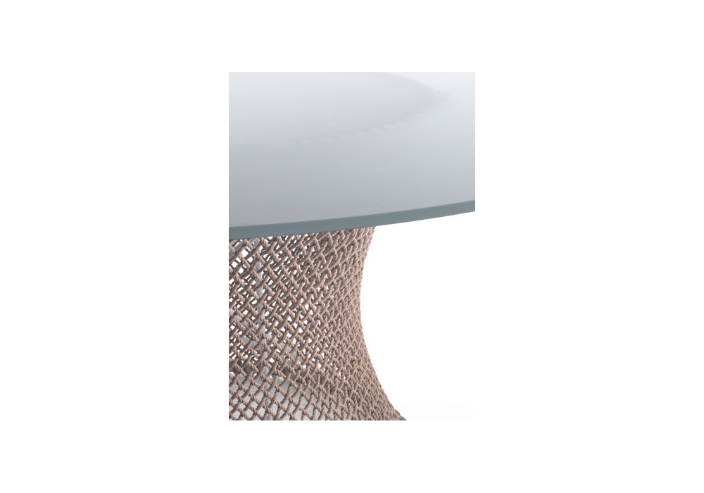 Oasis diseñada por Antonio Citterio para Flexform es una mesa redonda con tablero de vidrio o piedra, disponible en diferentes acabados. Estructura en tubular de acero inoxidable pintado con polvos epoxi. PVC o trama de cuerda, disponible en varios acabados. La familia Oasis incluye tanto mesas de comedor como mesas auxiliares propuestas en diferentes formas, medidas y acabados, diseñadas para amueblar espacios exteriores cuidando cada detalle.
