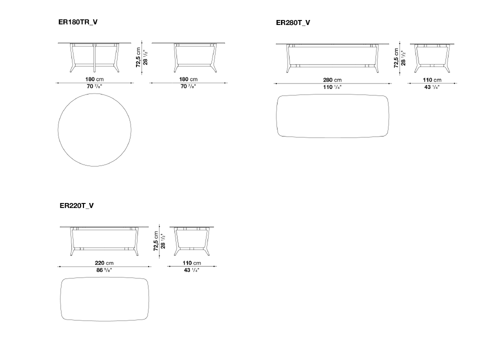 | Dimensiones | Ø 180 x H 73.5 cm; 280 x 110 x H 73.5 cm; 220 x 110 x H 73.5 cm. |