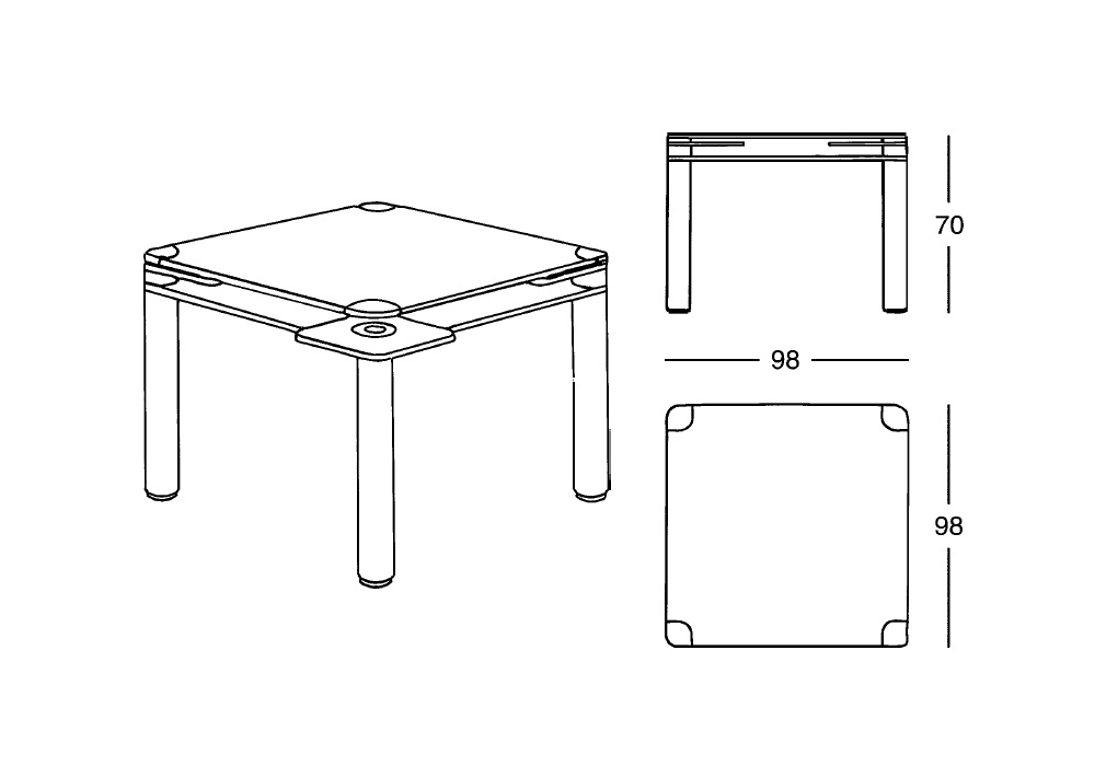 2625 Poker diseñado por Joe Colombo para Zanotta es una mesa de juego con sobres de laminado plástico estratificado, color blanco. Tapete verde extraíble con borde de piel. Patas de acero inox 18/8.