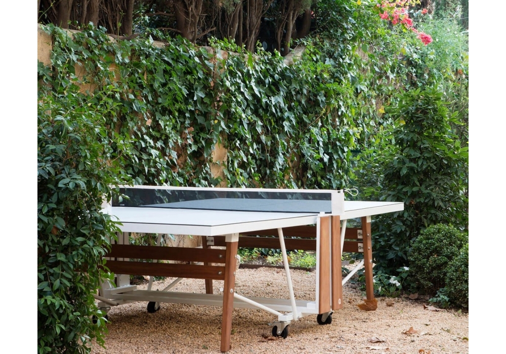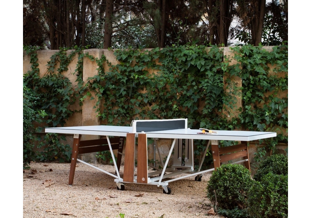 RS-Ping Pong Folding diseñada por Rafael Rodríguez para RS Barcelona es una mesa de ping pong plegable disponible en 2 acabados: blanco o negro. Patas en madera de iroko.