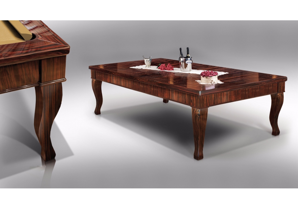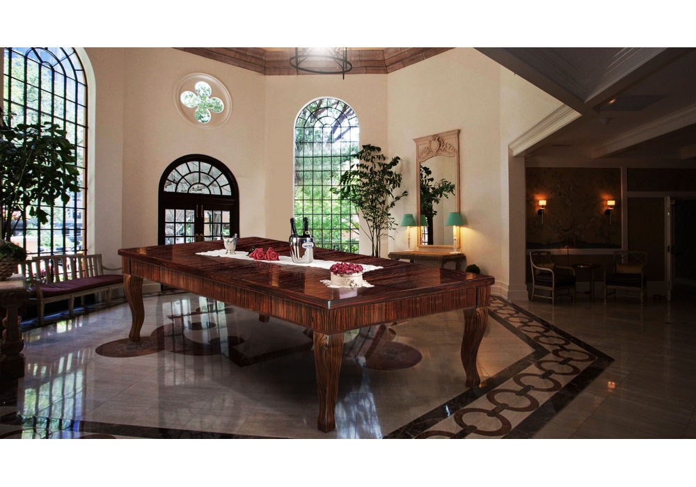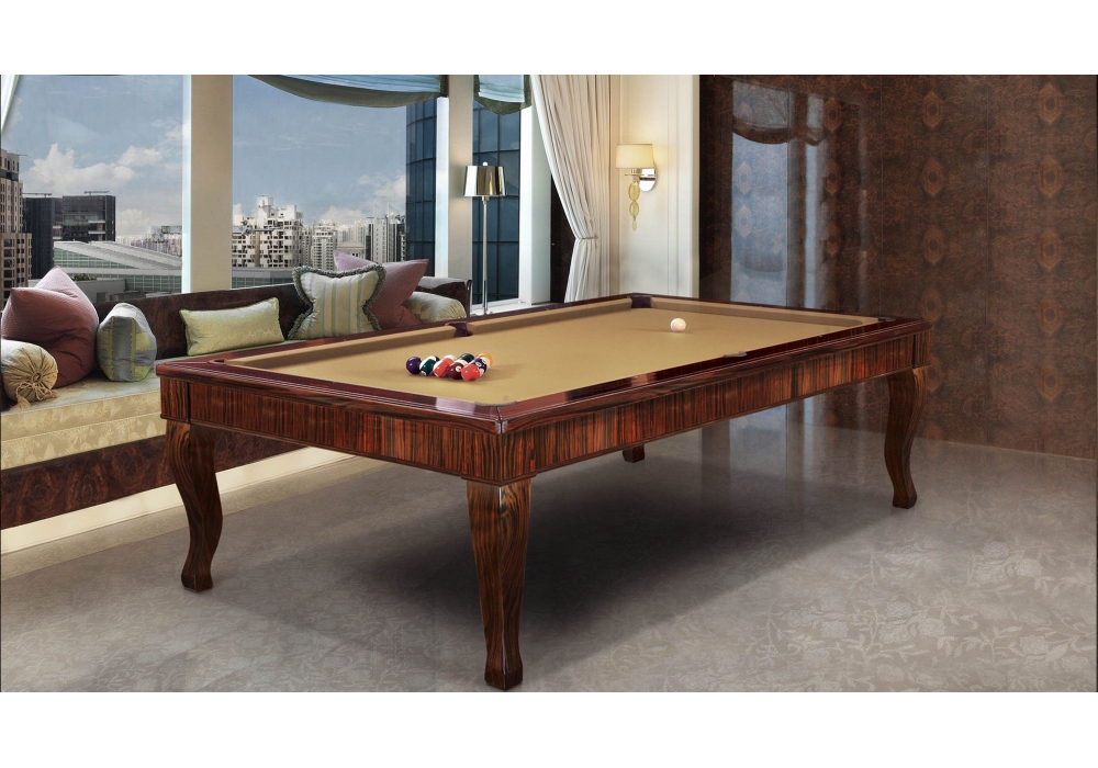 Canossa Ebano diseñada por Cavicchi es una mesa de billar realizada en madera de Ébano Makassar con bases en punta de sable. Disponible bajo pedido en diferentes acabados y medidas.