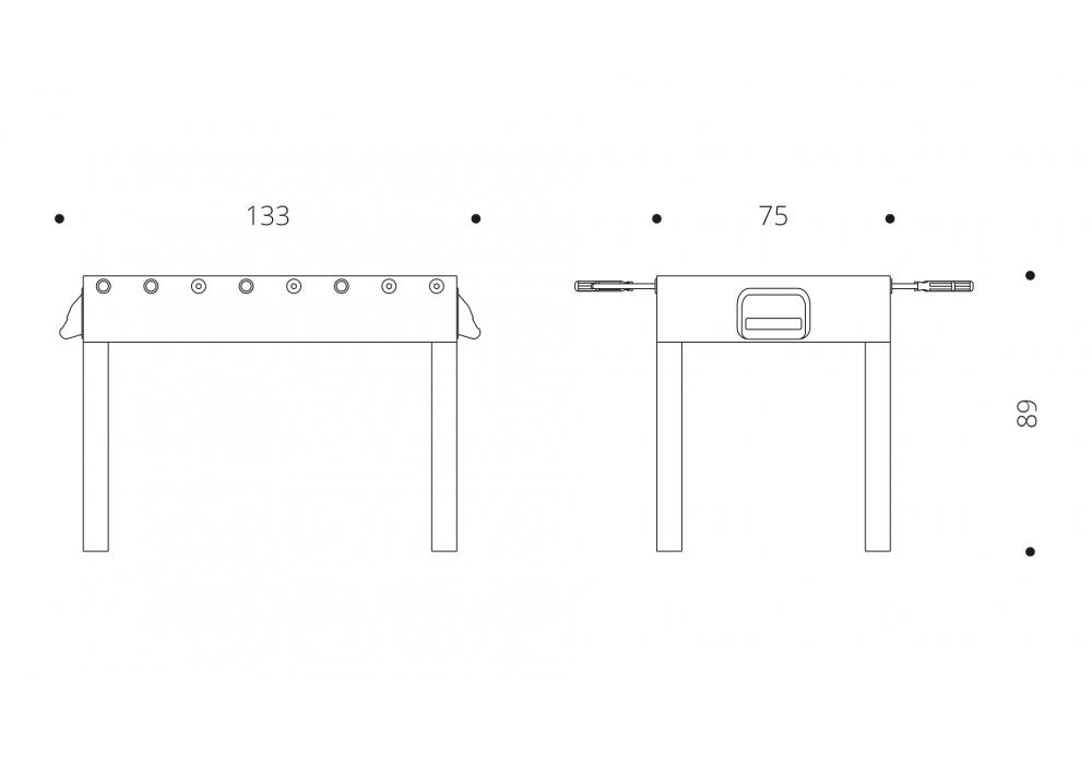 Fido diseñado por Basaglia + Rota Nodari para Fas Pendenza es un futbolín cuadrangular con campo de juego en vidrio templado de alta resistencia. El mueble está fabricado en MDF recubierto de laminado plástico. Las patas son de forma cuadrangular en caja metálica con pintura antirayaduras. Fido está disponible en diferentes acabados y versiones de eje, se suministra con 5 bolas de juego blancas.