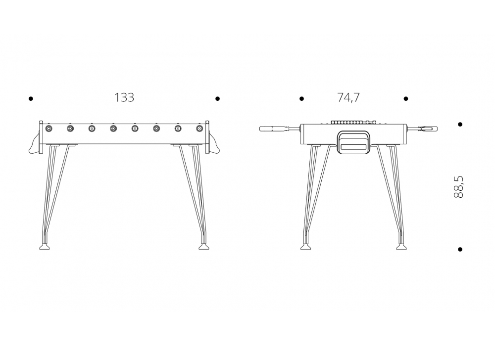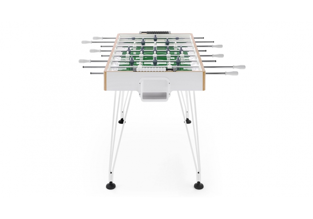 Apollo 20 diseñado por Basaglia + Rota Nodari para Fas Pendenza es un futbolín de exterior cuadrangular con campo de juego en vidrio templado de alta resistencia. El mueble es de madera de exterior revestido en laminado plástico de colores con esquina y canto en madera natural. Las patas están estructuradas mediante varillas de metal pintado con pies regulables. Apollo 20 está disponible en diferentes acabados y versiones de eje, y se suministra con 5 bolas de juego blancas.