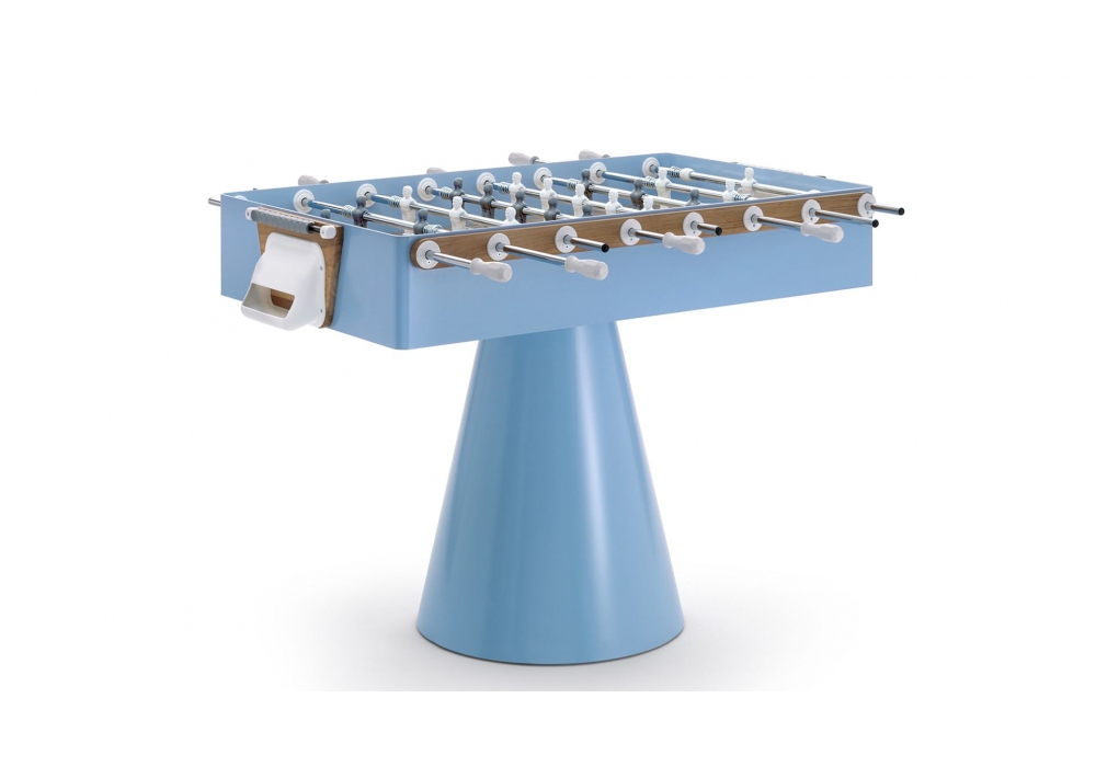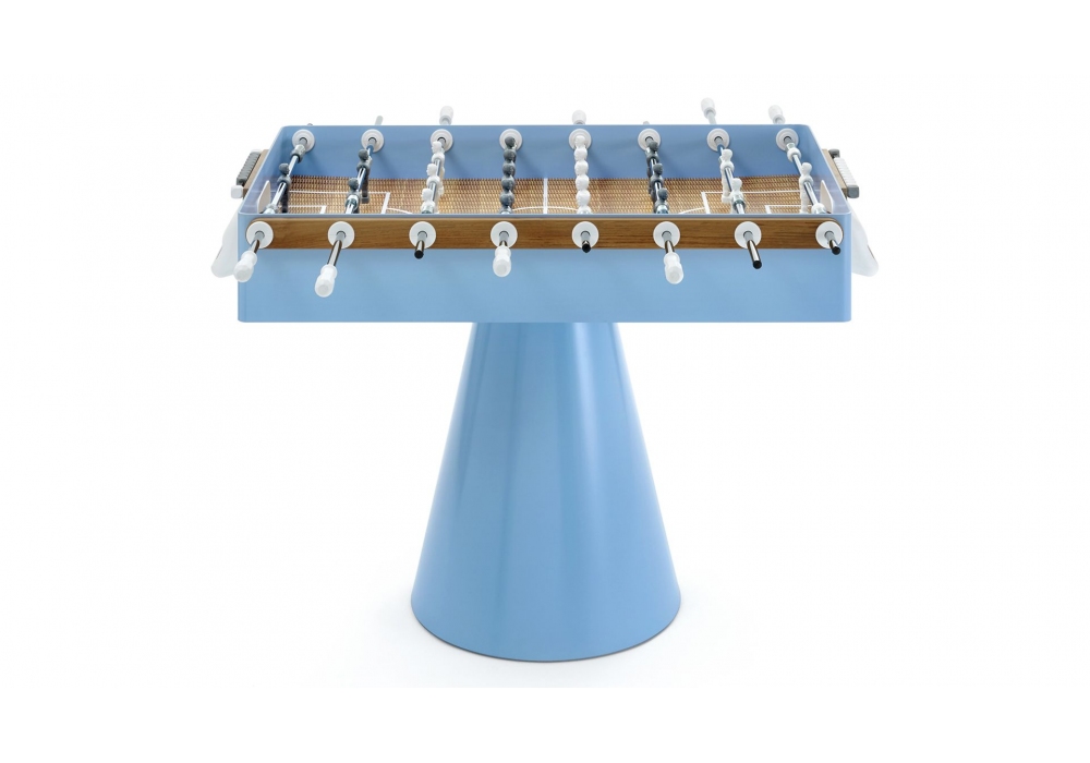 Ciclope Capri diseñado por Basaglia + Rota Nodari para Fas Pendenza es un futbolín de exterior de forma cuadrangular con un campo de juego en laminado plástico en capas. El mueble está realizado en metal con inserciones de madera de teca íntegramente pintada en azul claro. La base es de forma cónica en metal pintado con pies regulables. Ciclope Capri está disponible en diferentes versiones de varillas y se suministra con 5 bolas de juego blancas.