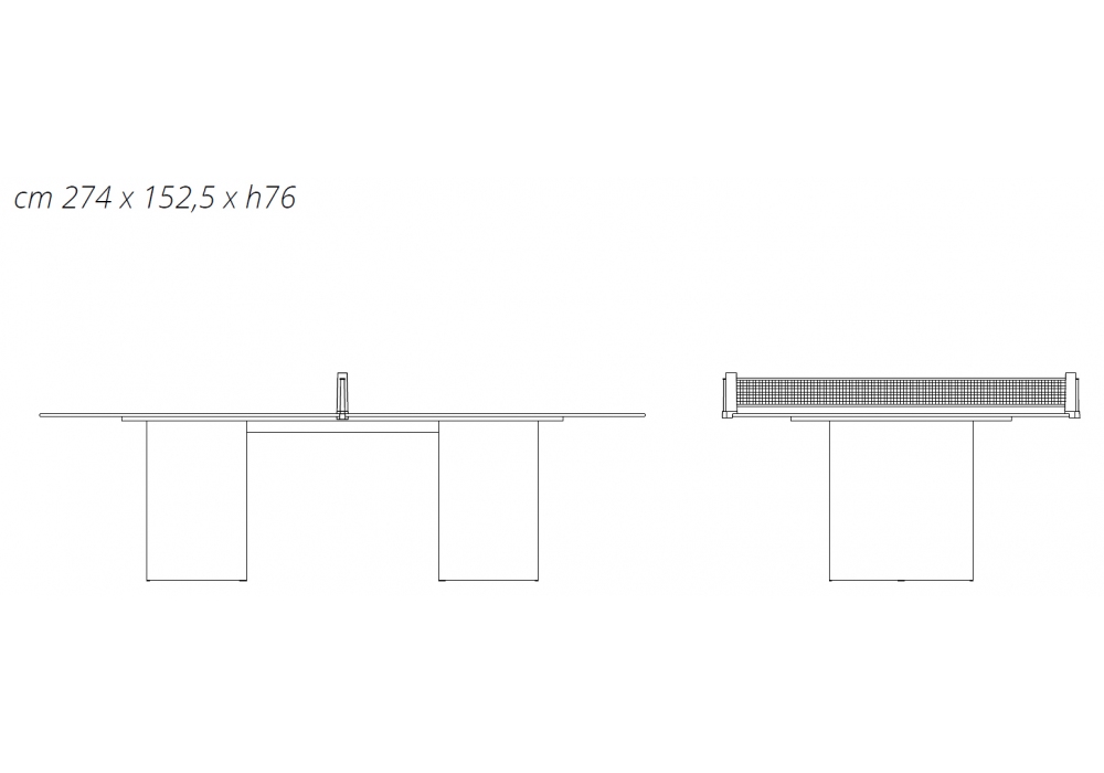 Crystal diseñada por Basaglia + Rota Nodari para Fas Pendenza es una mesa de ping pong de forma cuadrangular con un campo de juego estructurado íntegramente en vidrio serigrafiado en negro. La base está estructurada por dos estructuras semicuadrangulares de vidrio transparente. Crystal viene con 2 raquetas y 6 pelotas.
