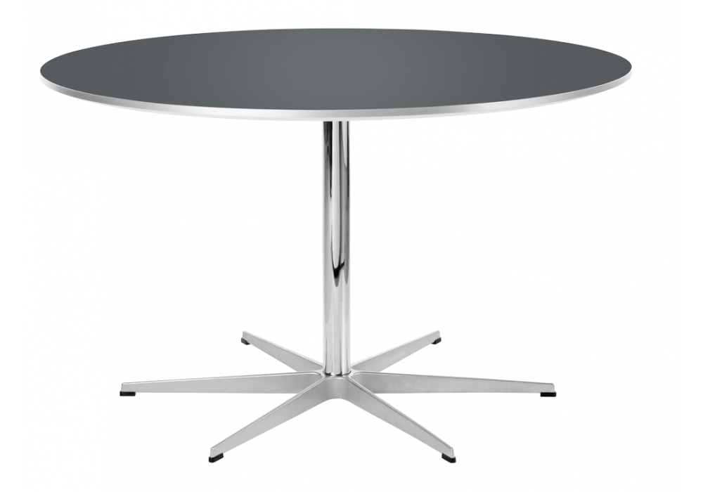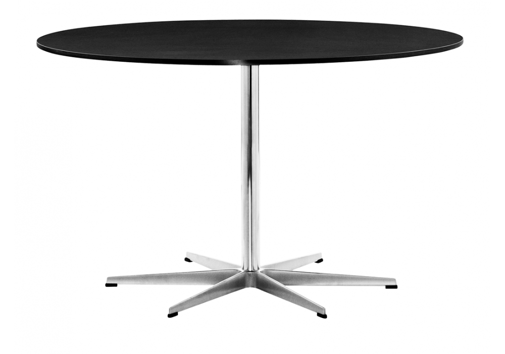 Circular diseñada por Arne Jacobsen para Fritz Hansen es una mesa con base de cuatro o seis radios realizada en aluminio pulido satinado o aluminio pintado en polvo. Tapa de madera laminada o chapada. Disponible en diferentes acabados y dimensiones.