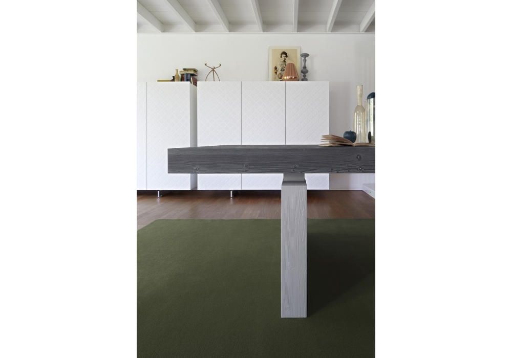 Big diseñada por Silvano Pierdonà para Capodopera es una mesa realizada en MDF lacado brillante o mate o con paneles de madera contrachapada.