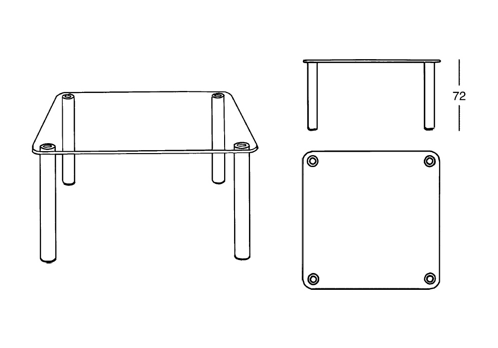 2530 Marcuso diseñada por Marco Zanuso para Zanotta es una mesa realizada con superficie de cristal con patas de acero inoxidable 18/8 o con superficie y patas revestidas en hormigón color antracita. Disponible en diferentes dimensiones.